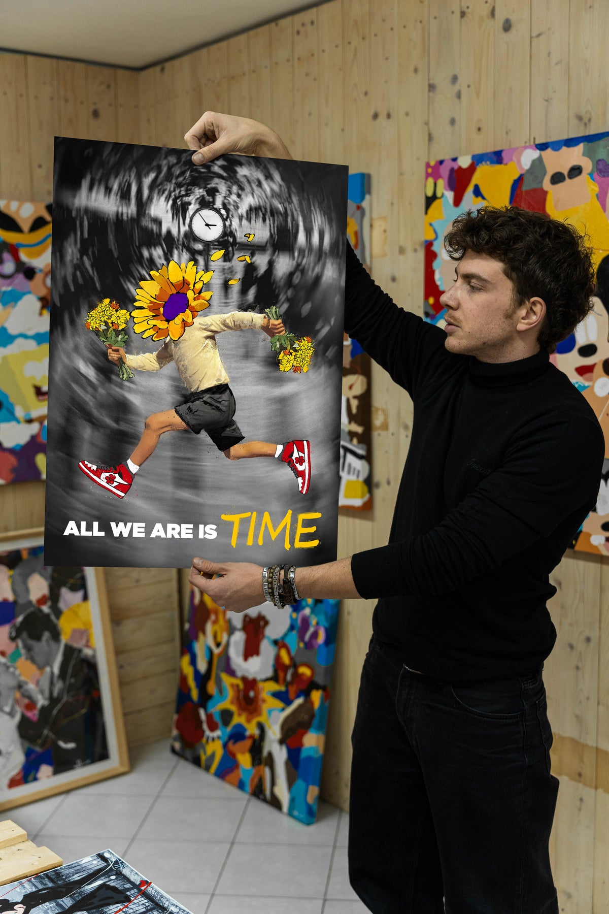 “TIME” è il primo manifesto ufficiale della collezione “All We Are”. Questo manifesto è stato creato digitalmente, stampato in alta qualità FineArt e firmato a mano JGio.